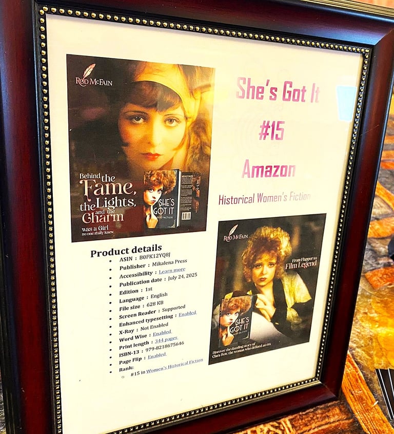 SHE’S GOT IT centers on "the price of fame," showcasing both its allure and the destructive risks it entails. It charts the tumultuous life of Clara Bow, a quintessential figure of Hollywood's Silent Films, from her impoverished beginnings to her rise as an iconic actress and decline into personal turmoil. (Read sample on Novel Excerpts page)